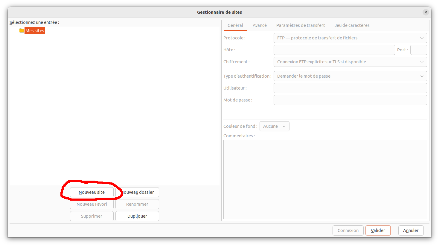 2. Ouvrez le gestionnaire de sites dans FileZilla et cliquez sur "Nouveau".